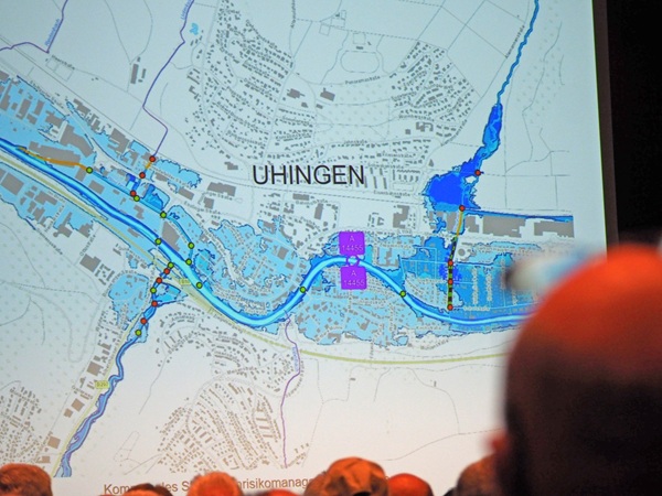 Unwetterartige Gewitter können enorme Wassermassen mit sich bringen,die sich dann ihren Weg bahnen – auch in Häuser,Keller und Tiefgaragen. Wie dieses Risiko reduziert werden kann,zeigt das Starkregenrisiko-Management der Stadt Uhingen auf,das kürzlich im Uditorium vorgestellt wurde.
