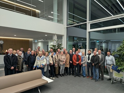 Die Gruppe von rund 40 Mitgliedern wurde von den beiden Geschäftsführern des ALB FILS KLINIKUMS,Dr. med. Ingo Hüttner und Wolfgang Schmid,empfangen. Ein zentrales Element des Besuchs war die Begehung der neuen,hochmodernen Funktionsbereiche,die seit dem Einzug im Juli in Betrieb sind. So wurden in der Zentralen Notaufnahme die optimierten Abläufe und der Schockraum für eine schnelle und effiziente Erstversorgung vorgestellt. In den Funktionsbereichen der Kardiologie und Gastroenterologie referierten Prof. Dr. Stephan Schröder,Chefarzt der Klinik für Kardiologie und Internistische Gefäßmedizin,und Dr. Torsten Feez,Leitender Oberarzt der Klinik für Gastroenterologie,Hepatologie und Diabetologie,über die Nutzung der neuesten diagnostischen und interventionellen Techniken in den speziell ausgestatteten Untersuchungsräumen.