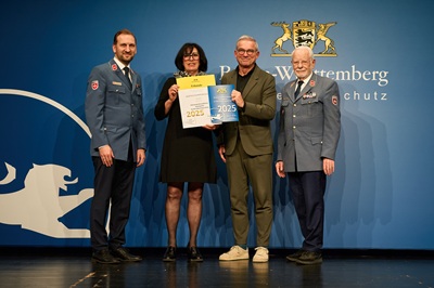 Martina Heusel,Leiterin des Geschäftsbereichs Personal und Prokuristin des ALB FILS KLINIKUMS,nahm die Auszeichnung bei der Feierstunde in Tamm entgegen: „Für uns ist es selbstverständlich,unsere Mitarbeitenden in ihrem Ehrenamt im Bevölkerungsschutz zu unterstützen. Dieses ist von großer Bedeutung für die Sicherheit der Menschen in unserer Region und für das funktionierende Miteinander in der Gesellschaft. Umso mehr freut es uns,dass das Engagement unseres Klinikums auf diese Weise anerkannt und gewürdigt wird.“