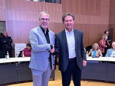 Nach knapp 40 Minuten waren alle Stimmzettel ausgezählt und das Ergebnis der Stichwahl stand fest. Oberbürgermeister Klaus Heininger gratulierte Oliver Marzian zum Wahlsieg. Mit 51,8 Prozent der Stimmen konnte er sich im zweiten Wahldurchgang am Sonntag,22.03.2026 gegen Anja Sauer durchsetzen. Die Wahlbeteiligung lag bei 41,5 Prozent.