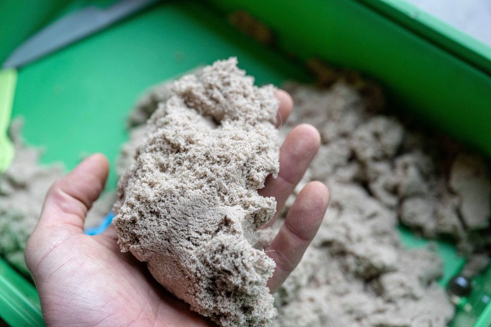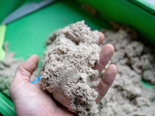 Eine Person hält Spielsand in der Hand