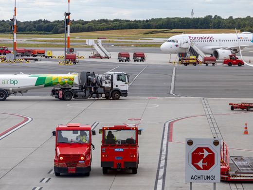 Tankwagen am Flughafen Hamburg: Kerosin ist infolge des Kriegs in Nahost weltweit knapper und teurer geworden