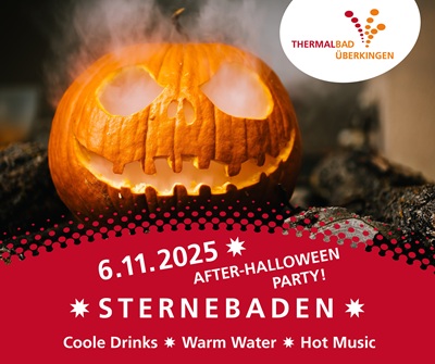 Am Donnerstag, 6. November 2025, lädt das Thermalbad Bad Überkingen ab 18:00 Uhr zum Sternebaden unter dem Motto „After-Halloween-Party“ ein. Die Besucherinnen und Besucher erwartet ein stimmungsvoll dekoriertes Bad mit thematisch passenden Getränken und kleinen Halloween-Häppchen. Passende Musik sorgt für eine besondere Atmosphäre, während im warmen Thermalwasser entspannt werden kann. Das Team des Thermalbads freut ...